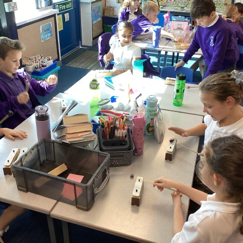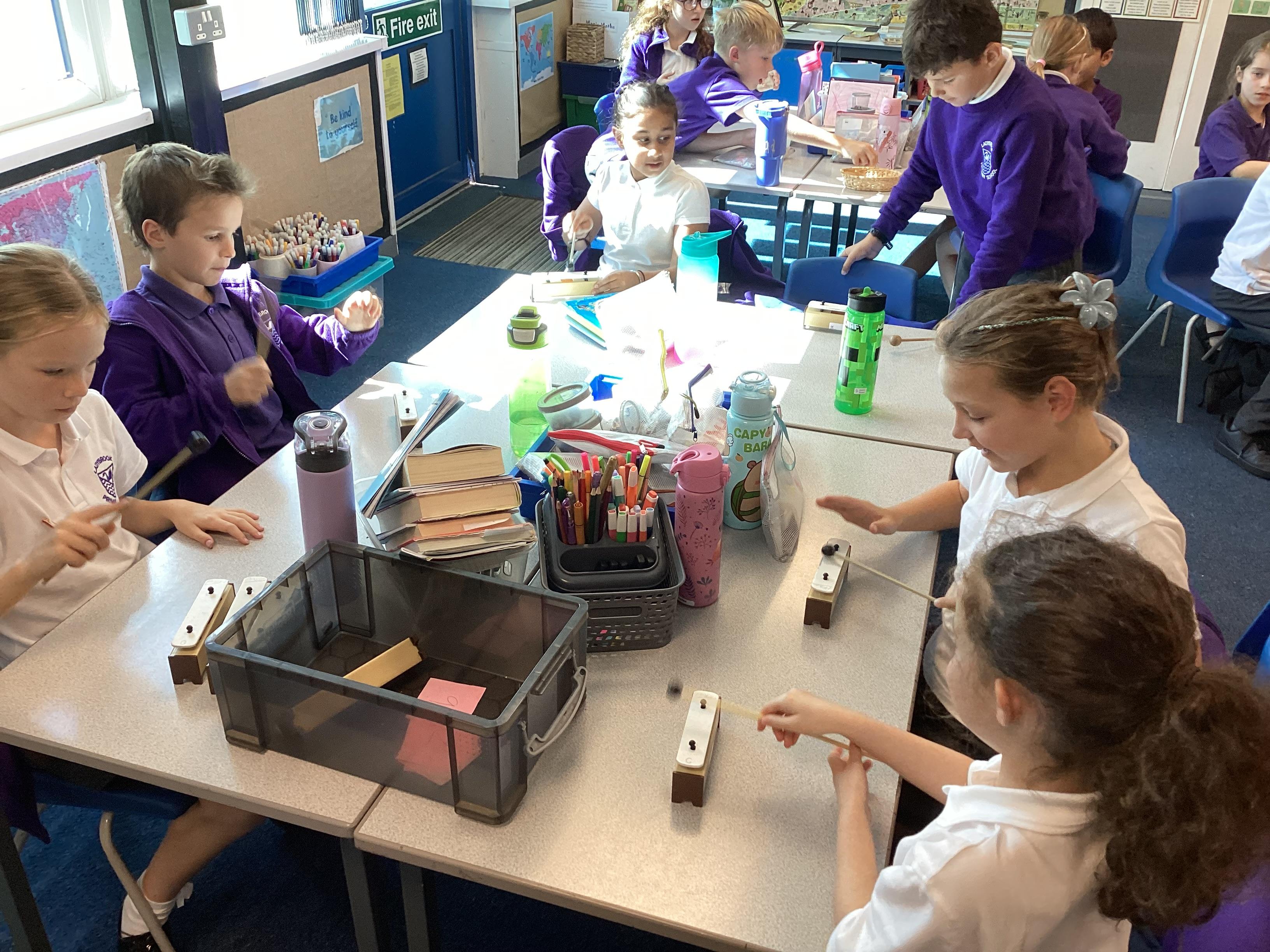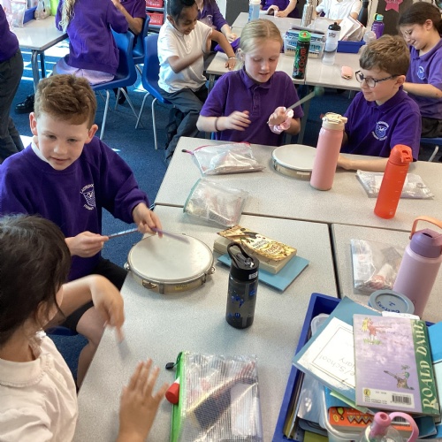 We have been learning about sound in science. Here we were exploring pitch using percussion instruments.