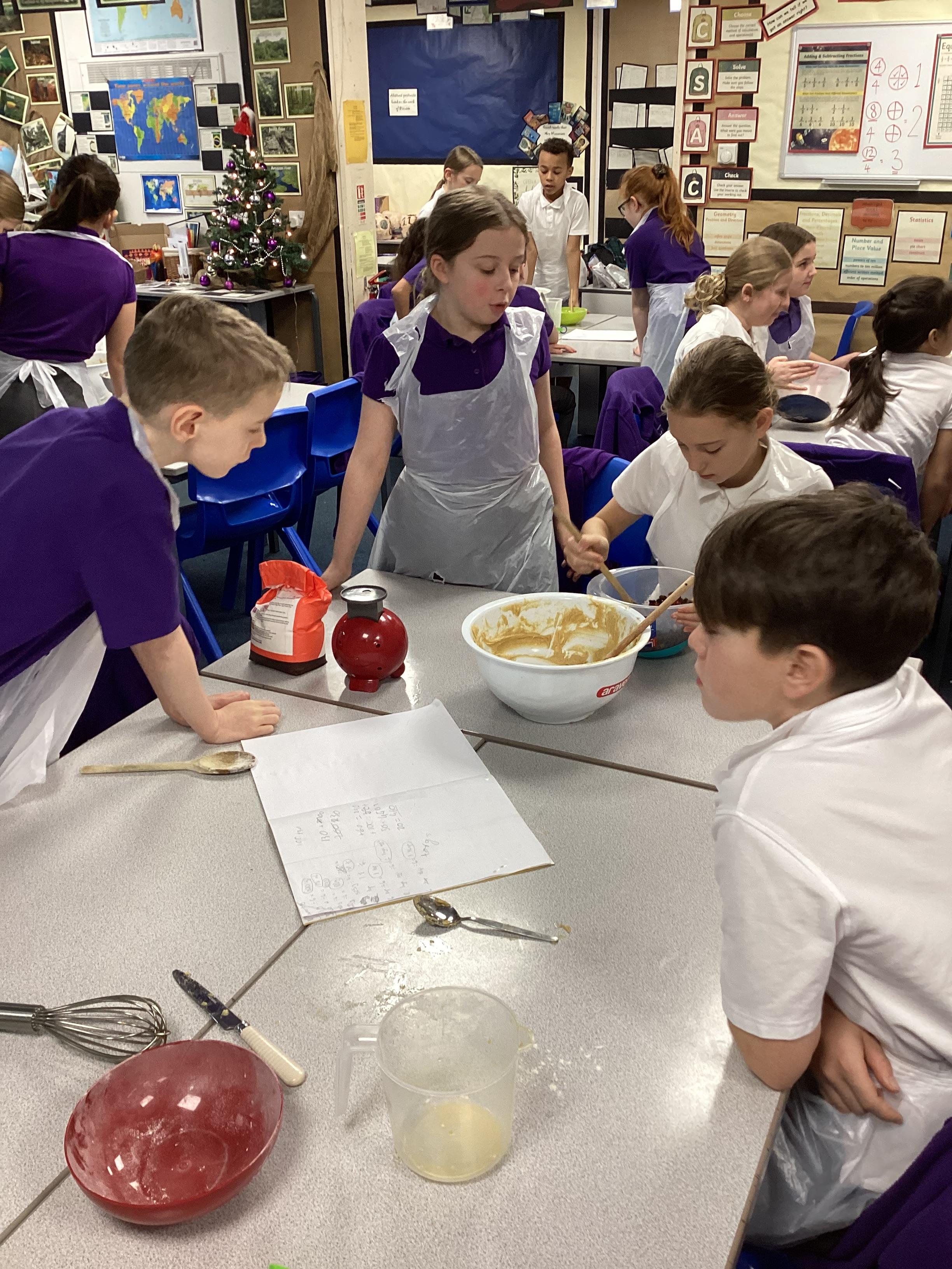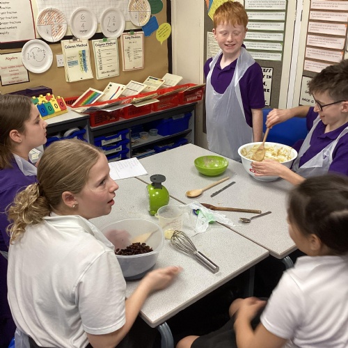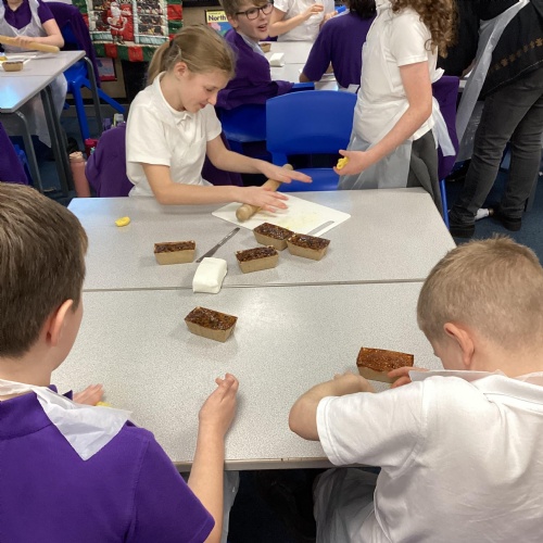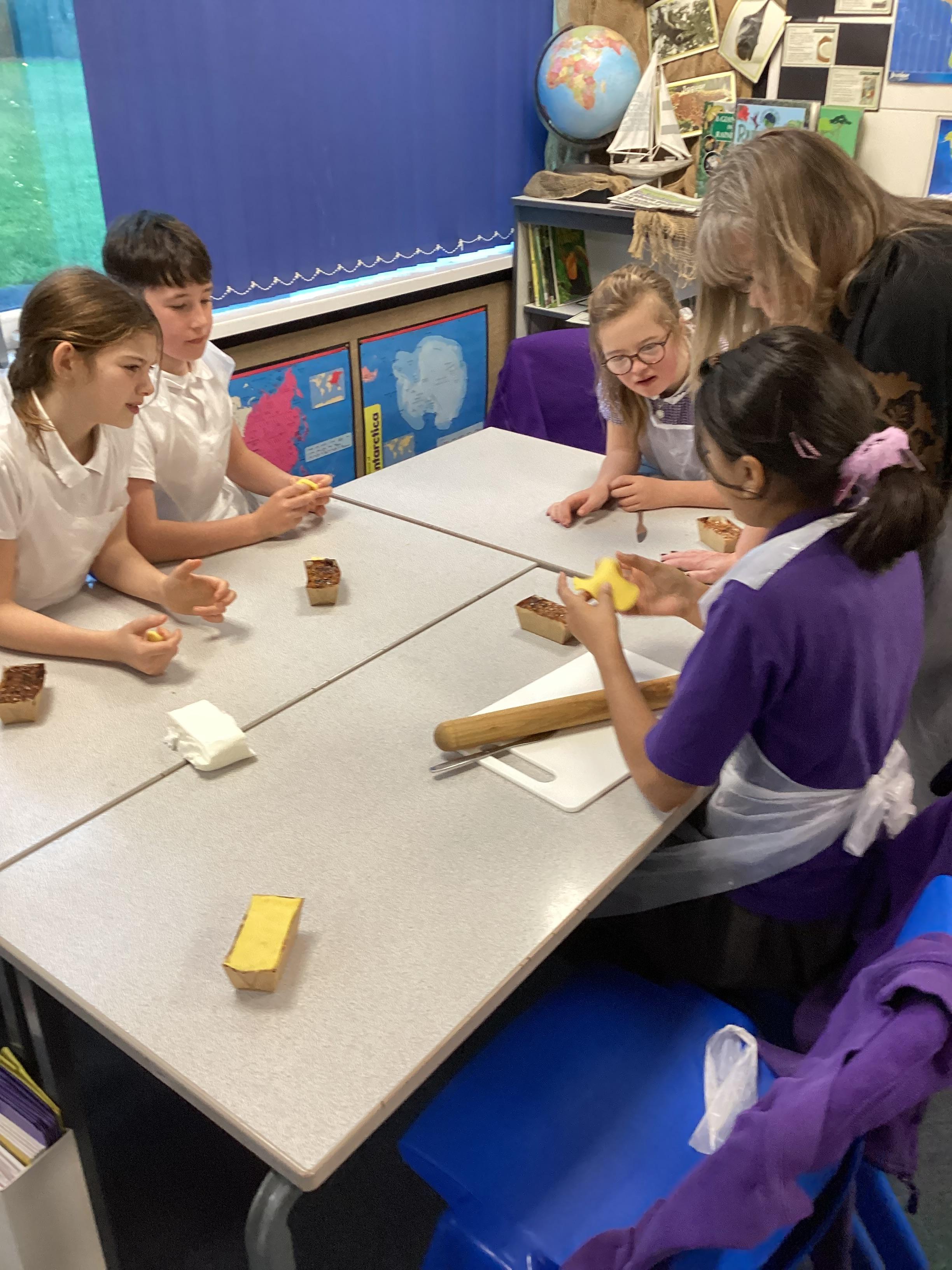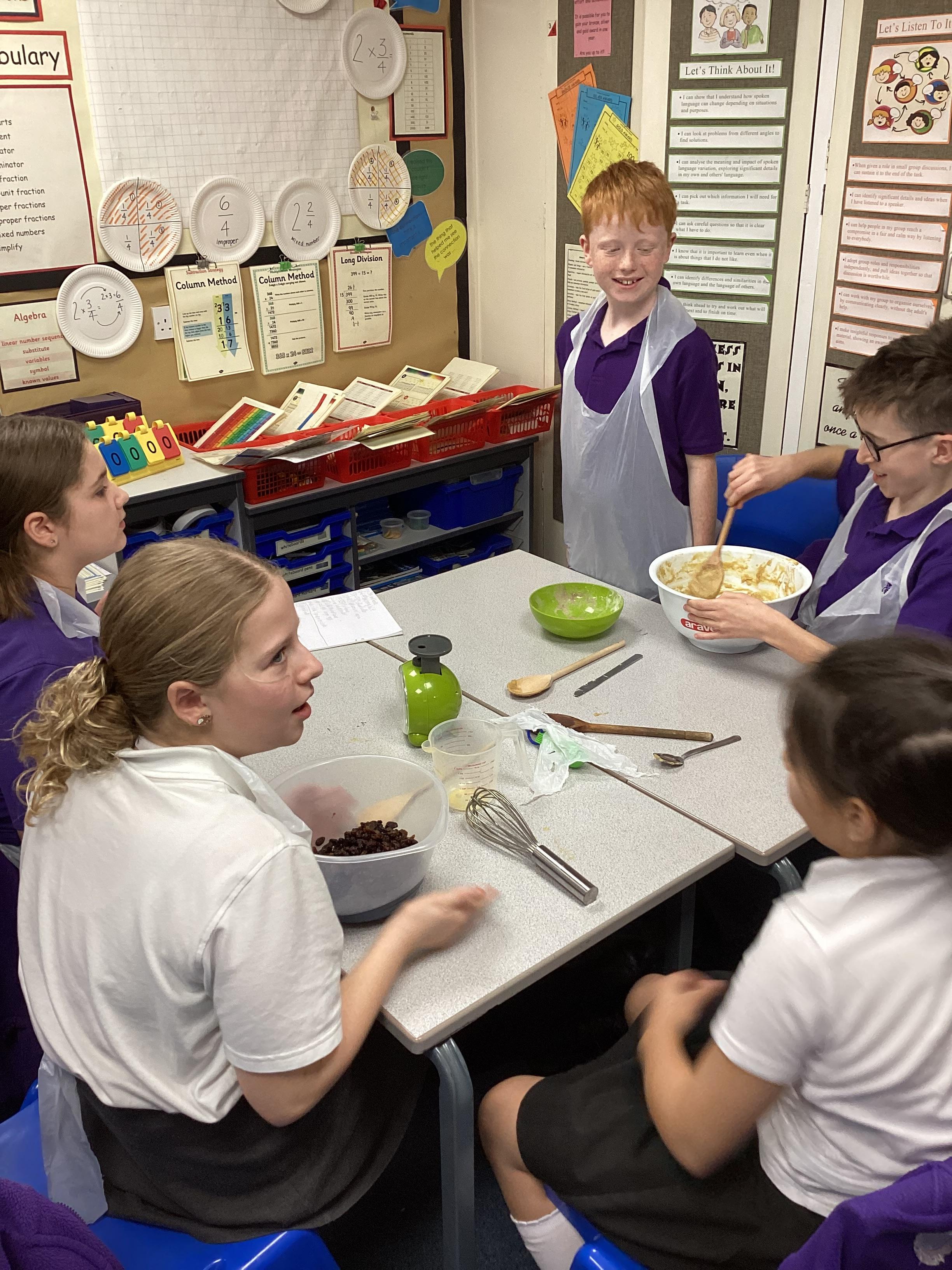 Eventually we decided on our adaptations to the main recipe in groups and were able to make the cakes. In maths, we considered ratios when thinking about quantities and also considered nets of shapes when deciding on our packaging.