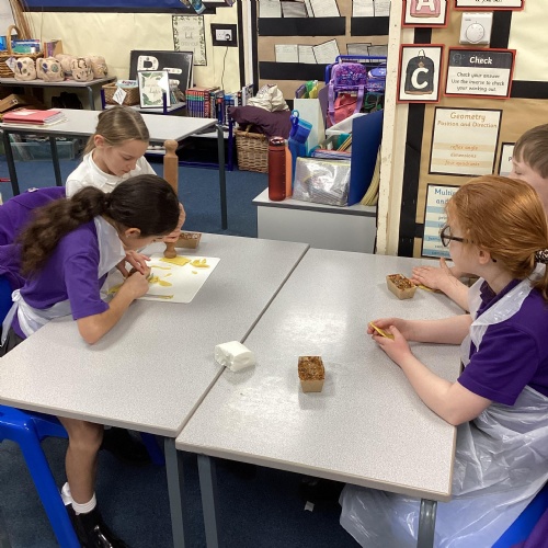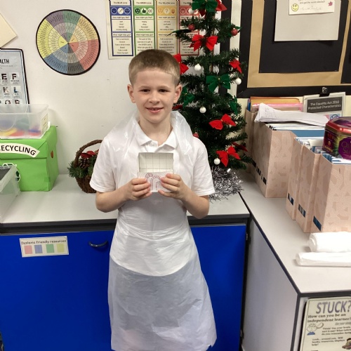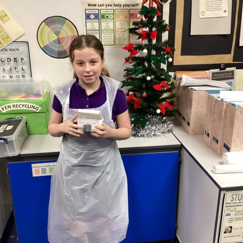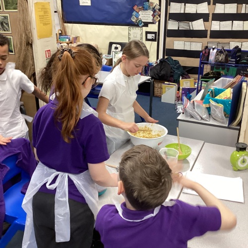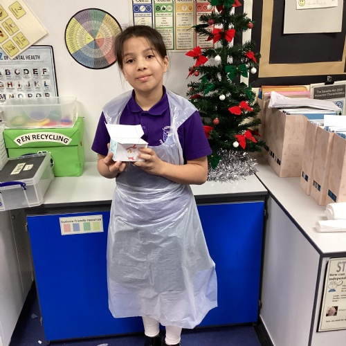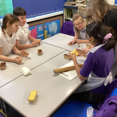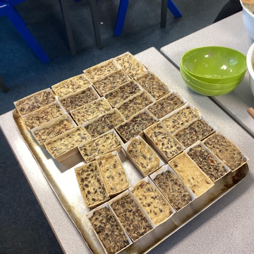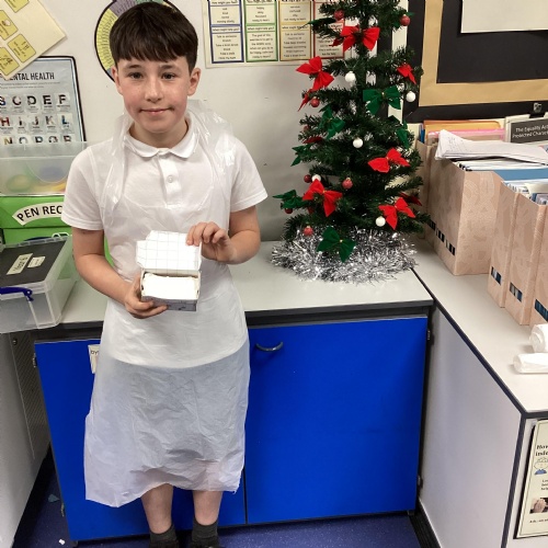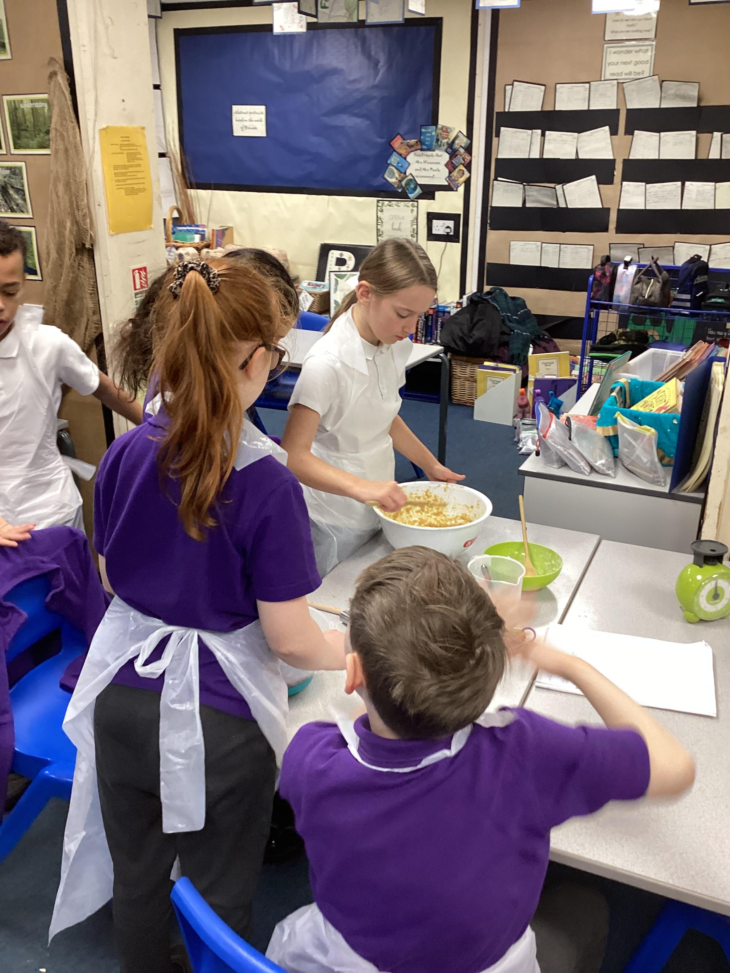 Eventually we decided on our adaptations to the main recipe in groups and were able to make the cakes. In maths, we considered ratios when thinking about quantities and also considered nets of shapes when deciding on our packaging.