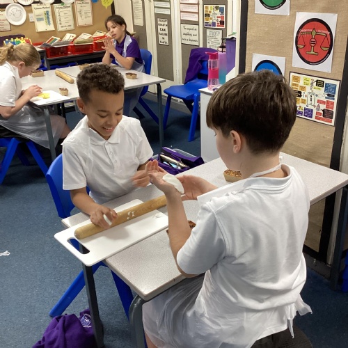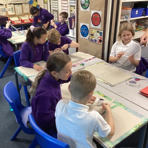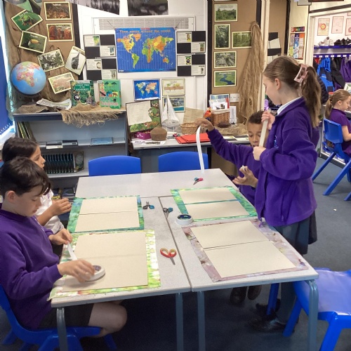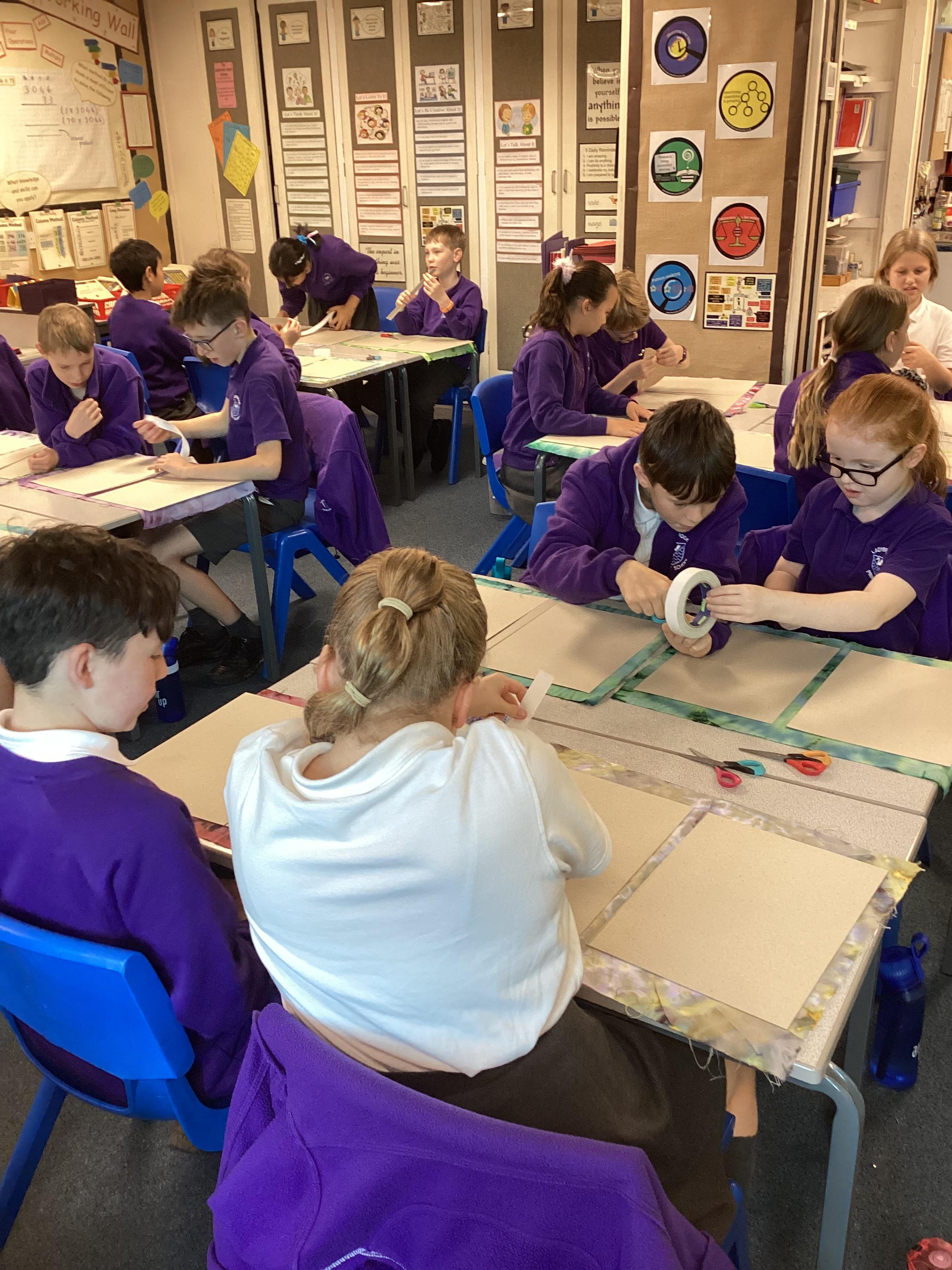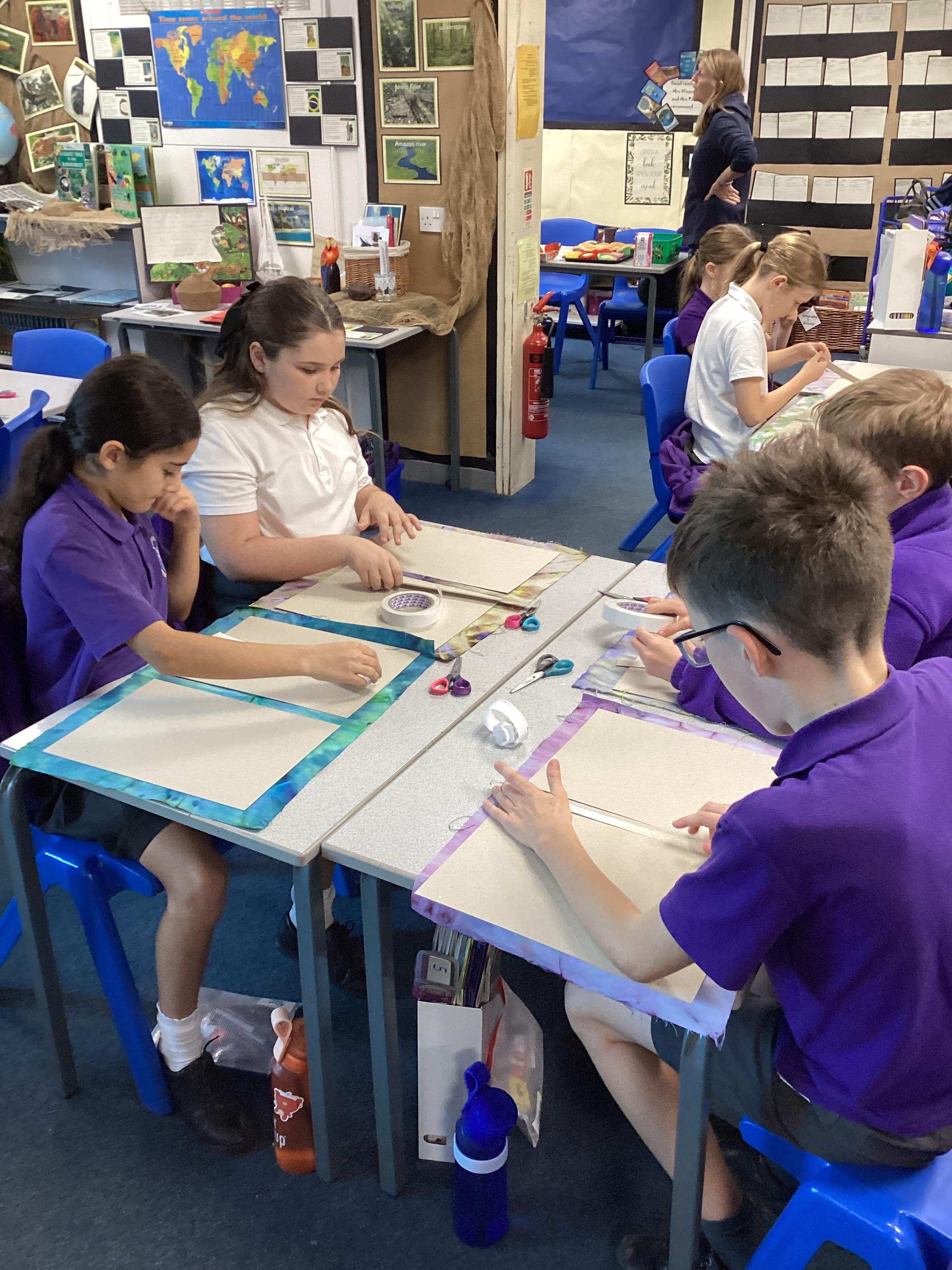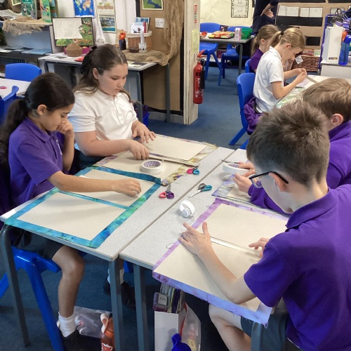 In DT, we created our beautiful topic books. We used tie-dying to create fabric covers and strengthened with cardboard. We decided our books would get quite heavy during the year as we collated our learning so we strengthened the spine further using plaited raffia. The finished products are really attractive but also durable for our needs.