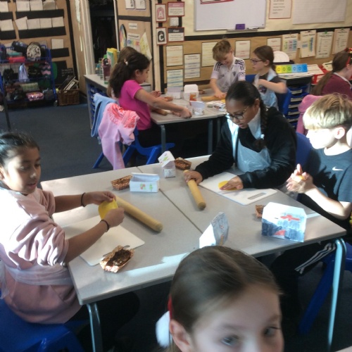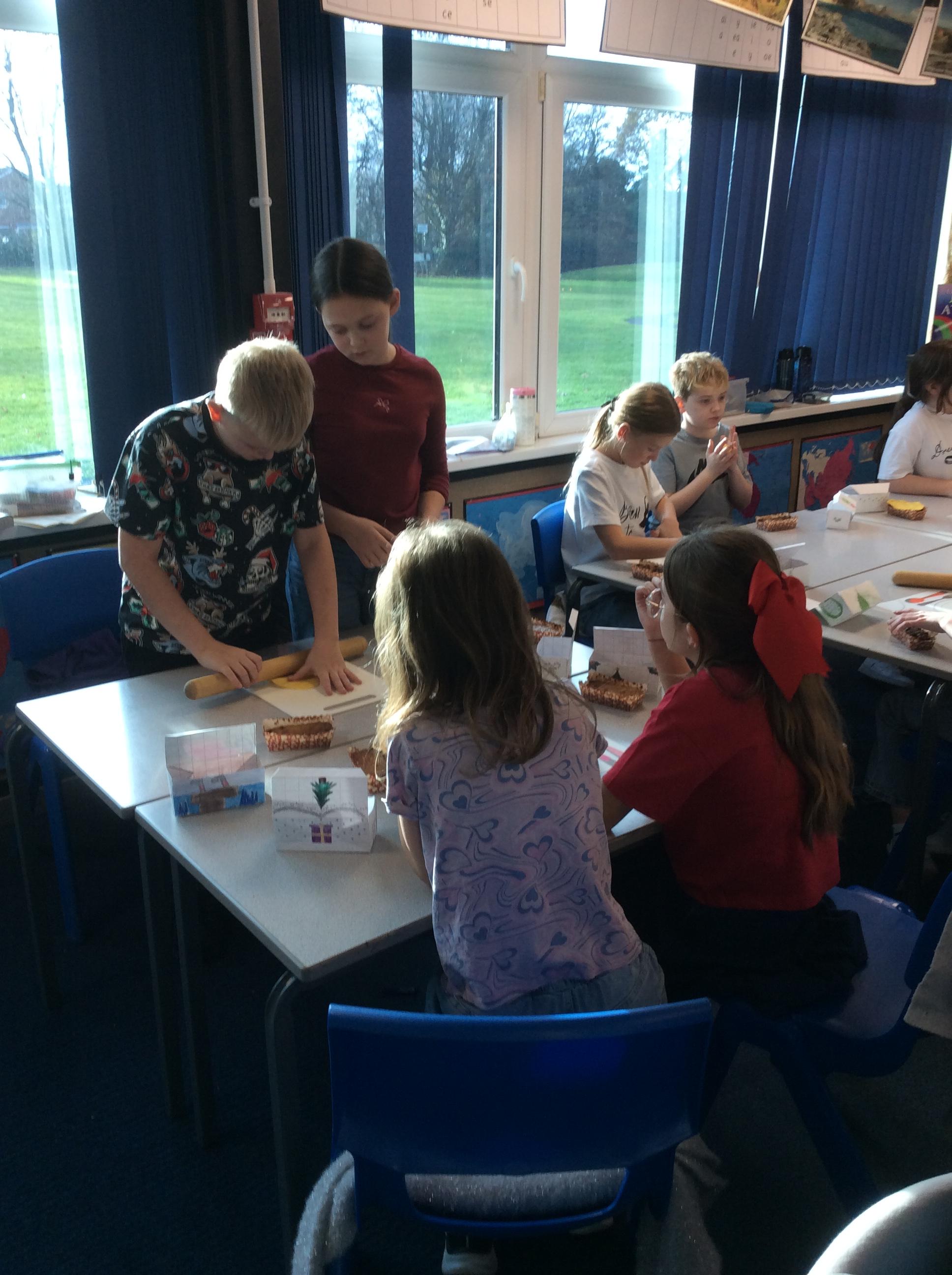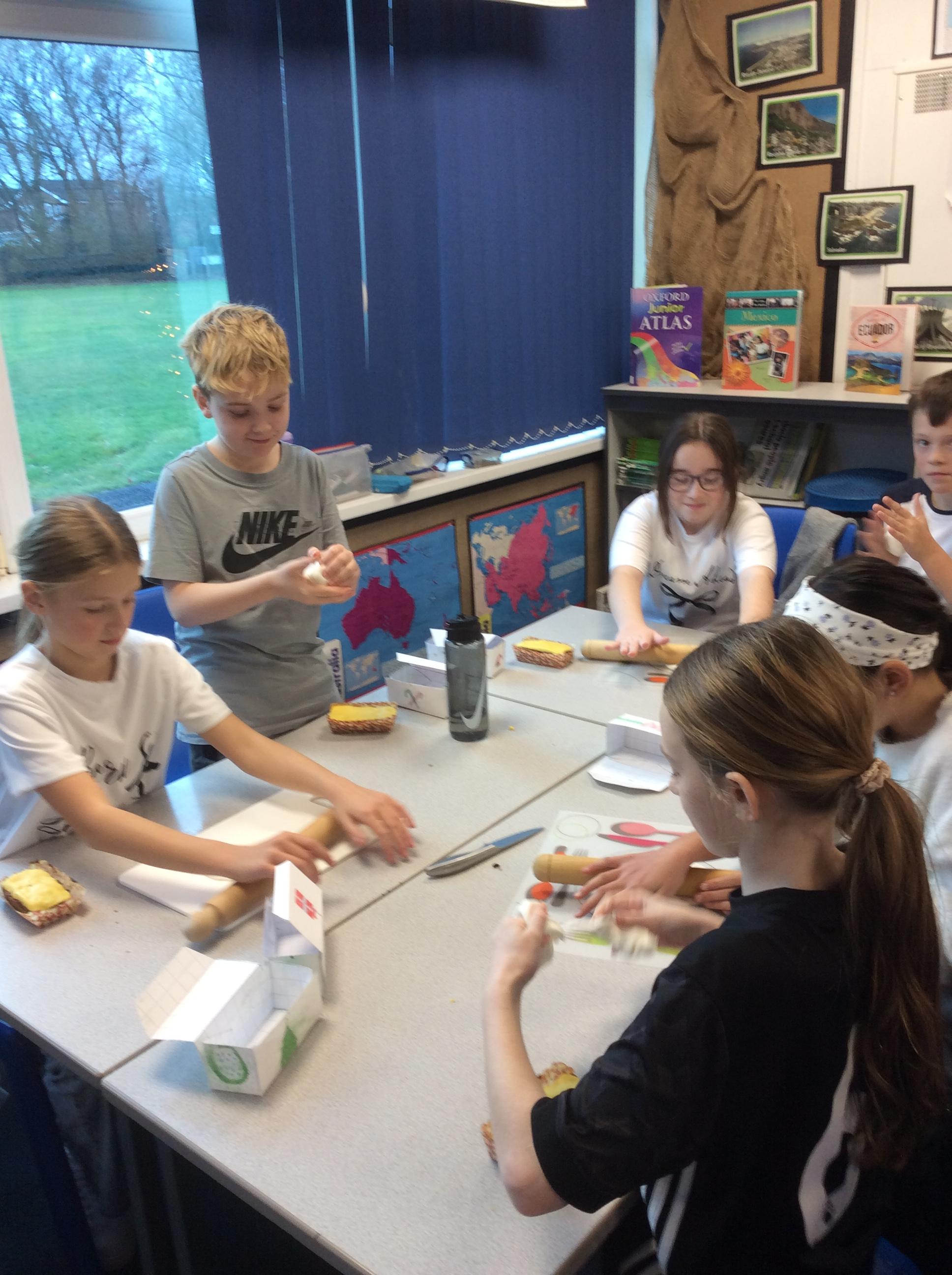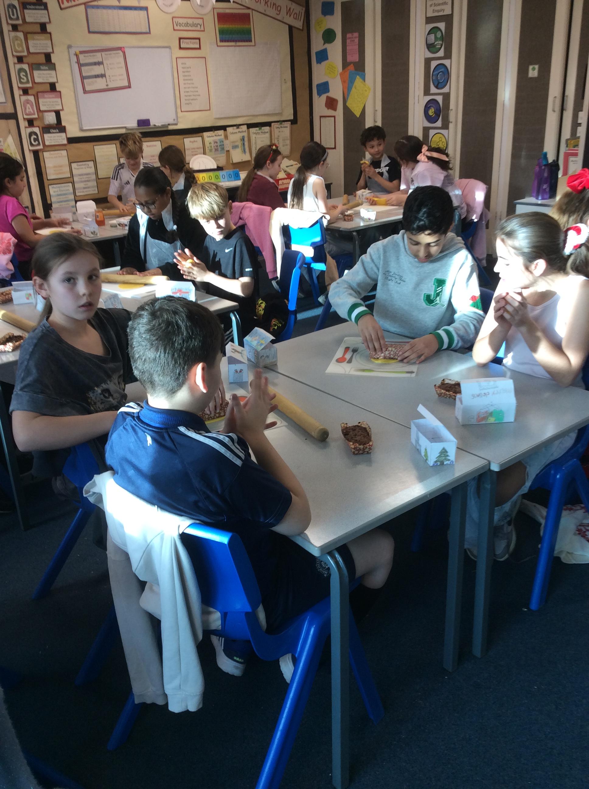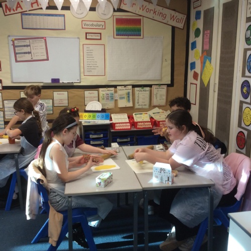 Eventually we decided on our adaptations to the main recipe in groups and were able to make the cakes. In maths, we considered ratios when thinking about quantities and also considered nets of shapes when deciding on our packaging.