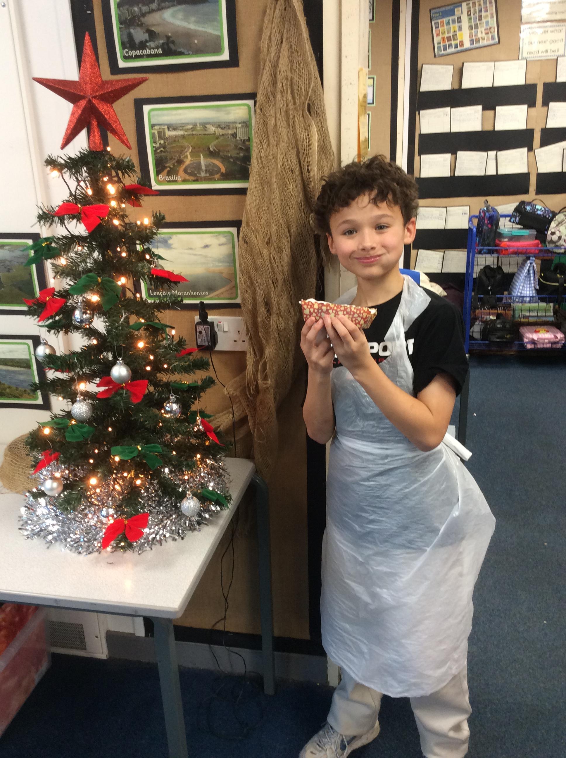 Our final product was a Christmas cake but before we could make it, we completed a sensory assessment where we tasted lots of the raw ingredients - different fruits, treacle, golden syrup. This was important for decision making later on. We had to consider the needs of our class and allergies before assessing the recipe.